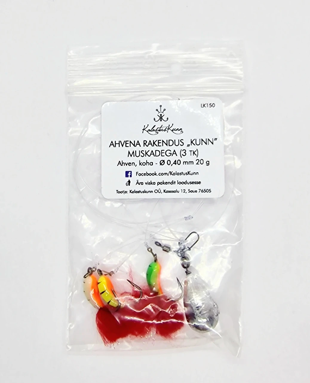 Ahvena rakendus, 3 lipsu 0,4mm, 3 muskat, 70cm, 15, 20, 30g raskusega.